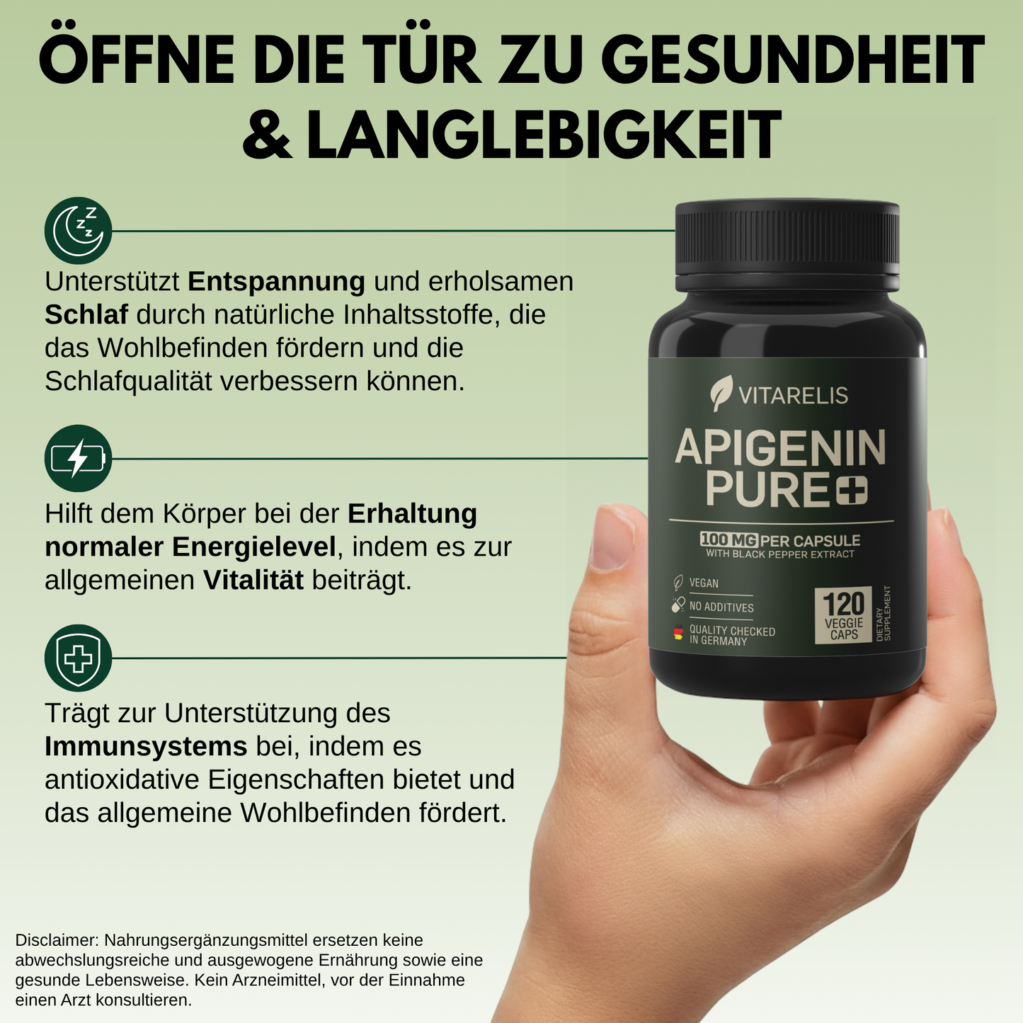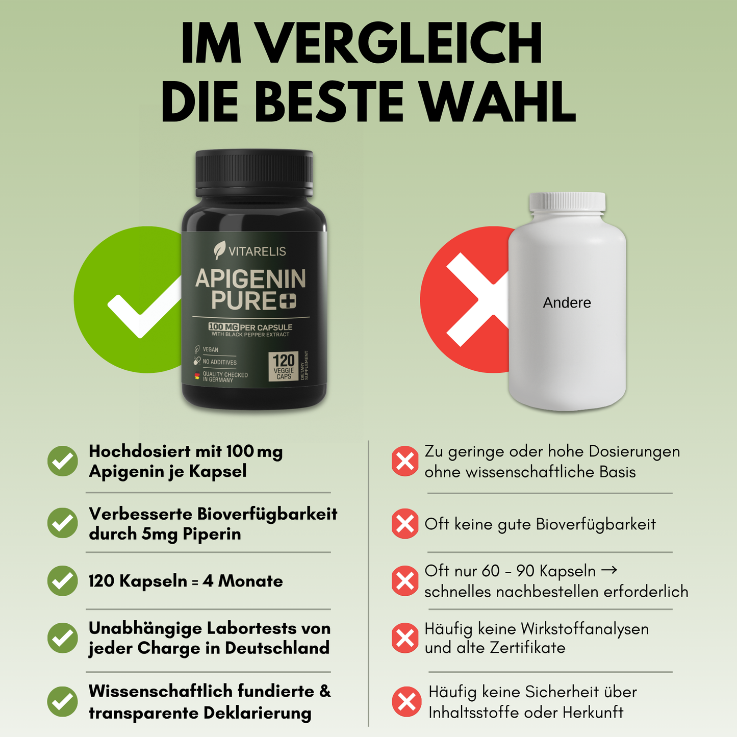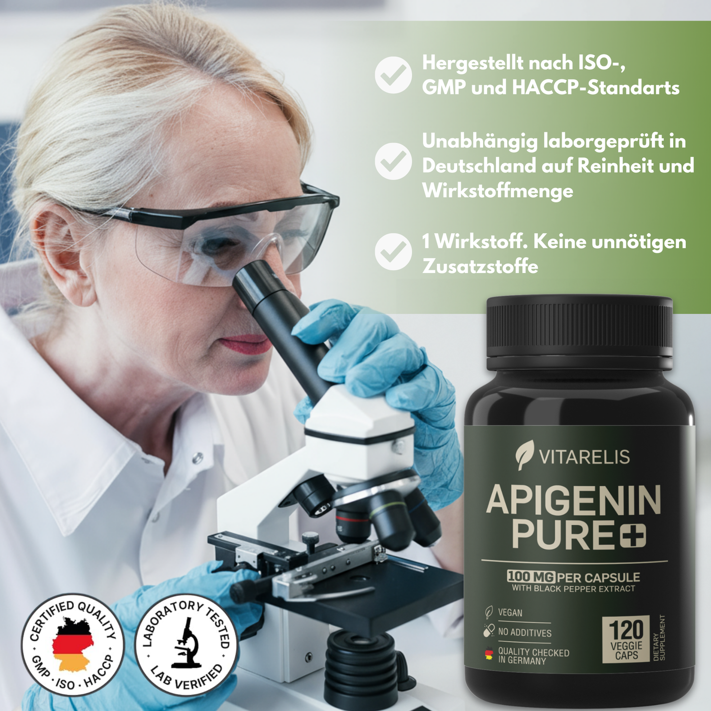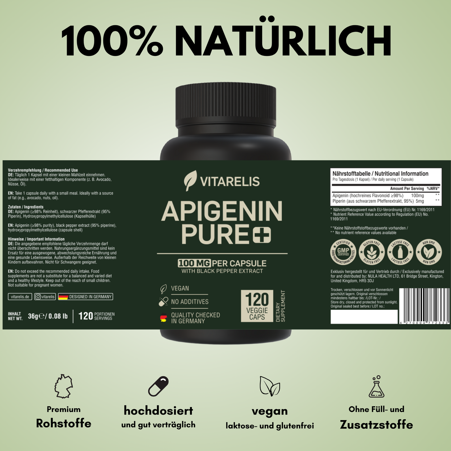 Regulärer Preis €29,99Apigenin Pure+ bietet mit 100mg pro Kapsel eine hochwertige, laborgeprüfte Formel aus Deutschland mit 120 veganen Kapseln. Der Wirkstoff, gewonnen aus hochreinem Kamillen-Extrakt (10%), wirkt als CD38-Hemmer und unterstützt so natürliche Prozesse im Körper. Frei von Gentechnik und sorgfältig hergestellt, garantiert dieses Produkt höchste Reinheit und Qualität für eine gezielte Ergänzung im Alltag.